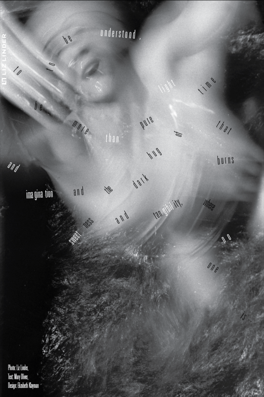 Assignment: Create visual posters for Mary Olivers poem "The Spirit Likes to Dress Up" using photographs taken by the esteemed Liz Linder combined with my own visual style.